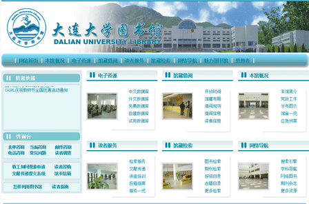 大連大學圖書館 網(wǎng)站作為大連大學圖書館的信息門戶,是圖書館面向讀者的統(tǒng)一信息服務平臺、是展示圖書館形象與綜合實力的窗口。通過該平臺,讀者可以根據(jù)自己的喜好和興趣方便地利用各種數(shù)字資源,享受高校數(shù)字圖書館提供的各項服務。