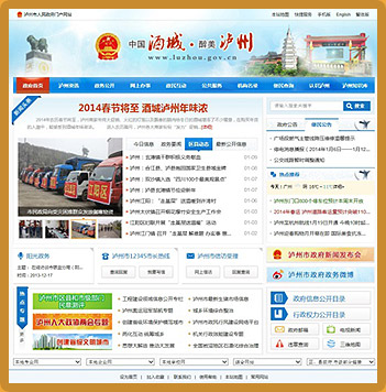 瀘州市人民政府門戶網(wǎng)站堅(jiān)持以人為本,以公眾為中心,把為公眾服務(wù)、為企業(yè)服務(wù)作為出發(fā)點(diǎn)和歸宿,堅(jiān)持“政務(wù)信息公開、網(wǎng)上辦事和互動(dòng)交流”三大功能定位,著力打造服務(wù)型政府網(wǎng)絡(luò)平臺(tái)。瀘州市人民政府門戶網(wǎng)站已經(jīng)開通中文簡(jiǎn)體版、中文繁體版、英文版、手機(jī)版。
