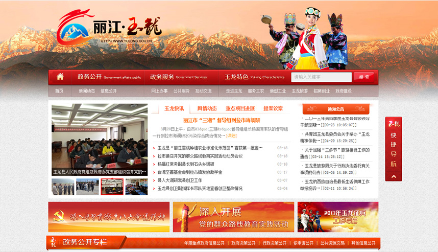 2013年玉龍縣人民政府與動易進行項目合作,對玉龍縣人民政府網(wǎng)站進行改版。