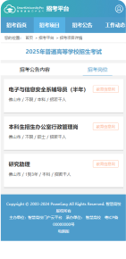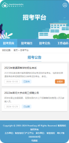 招生考試項(xiàng)目的操作支持:修改、刪除、設(shè)為當(dāng)前招生考試項(xiàng)目(始終只有一個(gè)項(xiàng)目為當(dāng)前項(xiàng)目)、發(fā)布/取消發(fā)布/設(shè)為公示中/設(shè)為過期。發(fā)布后前臺(tái)的招生考試模塊頁(yè)面自動(dòng)調(diào)用顯示招生考試公告。