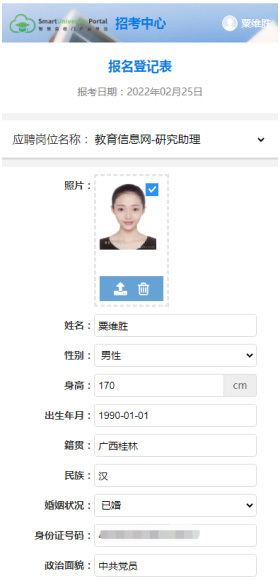 此外,如果考生增參加過以往的招考項(xiàng)目,系統(tǒng)會(huì)自動(dòng)復(fù)用之前的報(bào)名表信息,考生只需更新過期信息即可,極大減少了填寫工作的重復(fù)性。
