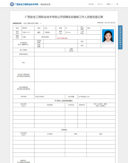 事業(yè)單位招考的報(bào)名表通常具有特定格式,與常規(guī)招聘簡(jiǎn)歷差異顯著??紤]到招考負(fù)責(zé)人和相關(guān)領(lǐng)導(dǎo)已習(xí)慣紙質(zhì)報(bào)名表的樣式,我們特別設(shè)計(jì)了高度仿真的報(bào)名表填寫和查看界面,確保用戶體驗(yàn)的一致性。