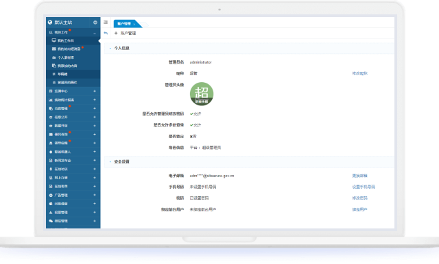 管理員工作臺(tái)系統(tǒng)是每個(gè)軟件系統(tǒng)的標(biāo)配功能,主要為每位管理員提供個(gè)性化設(shè)置功能,包括更新個(gè)人信息、修改密碼以及安全退出登錄等。