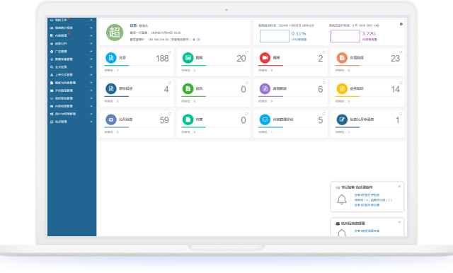 此外,右下角設(shè)有冒泡提示,實(shí)時(shí)提醒用戶各模塊的待處理任務(wù)和待審核信息,點(diǎn)擊提示即可快速進(jìn)入相應(yīng)模塊進(jìn)行處理。
