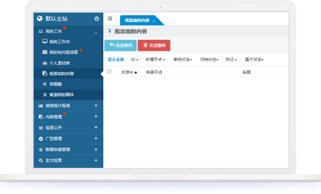 支持按內(nèi)容模型對被退回稿件進(jìn)行管理,每種內(nèi)容模型均精心設(shè)計(jì)了與之適配的列表頁與查看頁,以提升管理效率與體驗(yàn)。