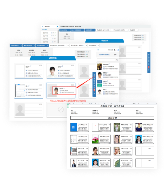支持導(dǎo)出座位表(監(jiān)考老師用與張貼用)、簽到表;
