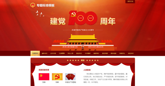 活動(dòng)內(nèi)容在活動(dòng)時(shí)間內(nèi),只要購買升級(jí)服務(wù)、續(xù)費(fèi)服務(wù)、模板定制服務(wù)、功能定制服務(wù)等,即可免費(fèi)獲得建黨100周年專題精品模板一套。