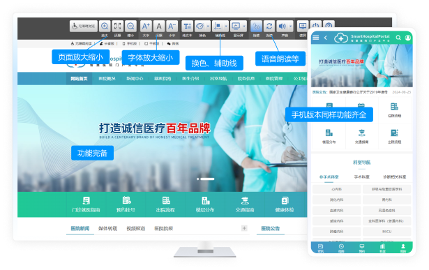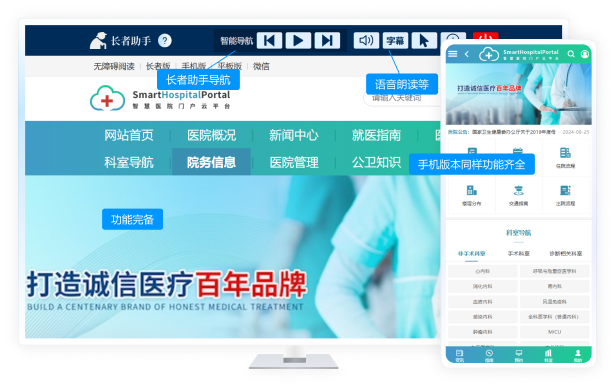 SmartHostpitalPortal 是動易基于 WebFuture 智慧門戶管理平臺,面向醫(yī)院及醫(yī)療機構(各類綜合醫(yī)院、??漆t(yī)院、教學醫(yī)院、康復醫(yī)院等醫(yī)療單位)實際需求而量身定制的整套解決方案,以滿足客戶對醫(yī)院及醫(yī)療機構網(wǎng)站群集約化建設、信創(chuàng)適配、移動端優(yōu)化、全媒體發(fā)布與監(jiān)測、無障礙改造和適老化建設等多項需求,同時還集成了與醫(yī)院日常工作相關的眾多業(yè)務系統(tǒng),如預約掛號系統(tǒng)、人才招聘系統(tǒng)、知識競賽系統(tǒng)、在線學習系統(tǒng)、證書管理系統(tǒng)、招聘考試系統(tǒng)、會議室預定系統(tǒng)等,該方案能為醫(yī)院業(yè)務流程的優(yōu)化、醫(yī)患關系的改善以及醫(yī)院運營效率的提高提供全方位的支持。