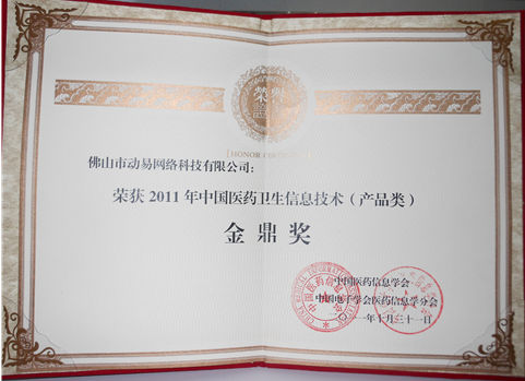 2011年10月31~11月3日,“第五屆中國(guó)國(guó)際電子病歷? 醫(yī)藥物聯(lián)網(wǎng)?健康云計(jì)算博覽會(huì)”在深圳隆重舉辦,大會(huì)評(píng)選出了一年一度的中國(guó)醫(yī)藥衛(wèi)生信息“金鼎獎(jiǎng)”,動(dòng)易軟件榮獲“2011年中國(guó)醫(yī)藥衛(wèi)生信息化首選品牌”獎(jiǎng)和“2011年中國(guó)醫(yī)藥衛(wèi)生信息技術(shù)(產(chǎn)品類)金鼎獎(jiǎng)”。