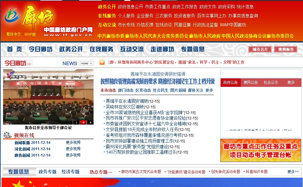 “中國廊坊”政府門戶網(wǎng)站使用動(dòng)易政府網(wǎng)站建設(shè)解決方案進(jìn)行構(gòu)建,通過政務(wù)公開、在線服務(wù)、互動(dòng)交流三方面積極開展工作,不斷深化政務(wù)公開,提升在線服務(wù)水平,按照及時(shí)準(zhǔn)確、公開透明、強(qiáng)化服務(wù)、便民利民的原則,多角度地為社會(huì)公眾提供快捷、細(xì)致、周到的規(guī)范性、權(quán)威性服務(wù),成為市政府面向社會(huì)的重要政務(wù)載體、信息平臺和宣傳服務(wù)窗口。