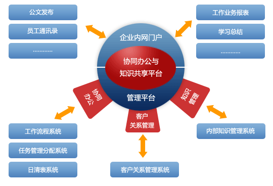 動(dòng)易協(xié)同辦公與知識(shí)共享平臺(tái)由協(xié)同辦公平臺(tái)、知識(shí)管理平臺(tái)兩大部份構(gòu)成,涵蓋企業(yè)工作流管理、任務(wù)分配管理、日清表管理、客戶關(guān)系管理、內(nèi)部知識(shí)門戶等應(yīng)用,將知識(shí)管理與應(yīng)用平臺(tái)、管理和協(xié)作平臺(tái)、溝通平臺(tái)集于一身,有效解決信息孤島、應(yīng)用孤島和資源孤島問題,打破企業(yè)管理的各種屏障,讓企業(yè)的人、財(cái)、物、信息、流程等資源集中在統(tǒng)一的平臺(tái)上進(jìn)行管理,并實(shí)現(xiàn)它們之間的緊密鏈接和高效協(xié)作,從而為企業(yè)建立一個(gè)全面協(xié)同的數(shù)字化管理和運(yùn)營環(huán)境。
