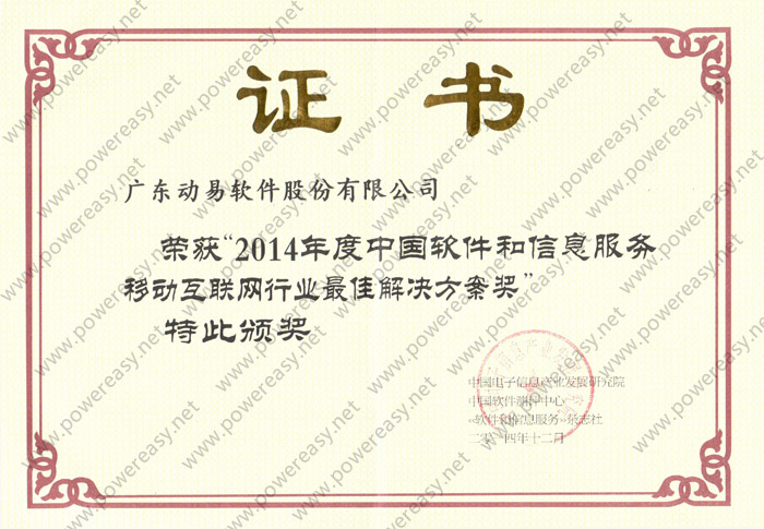 在當(dāng)晚的 “2014中國(guó)軟件巔峰之夜”活動(dòng)中,動(dòng)易軟件憑借多年服務(wù)電子政務(wù)的經(jīng)驗(yàn)和在移動(dòng)互聯(lián)網(wǎng)領(lǐng)域的研發(fā)成果,榮獲“電子政務(wù)領(lǐng)域杰出企業(yè)”、“移動(dòng)互聯(lián)網(wǎng)行業(yè)最佳解決方案”雙料大獎(jiǎng)?;顒?dòng)有多位產(chǎn)業(yè)主管部門領(lǐng)導(dǎo)出席,300多家全國(guó)知名軟件和信息技術(shù)服務(wù)企業(yè)高管現(xiàn)場(chǎng)觀禮。
