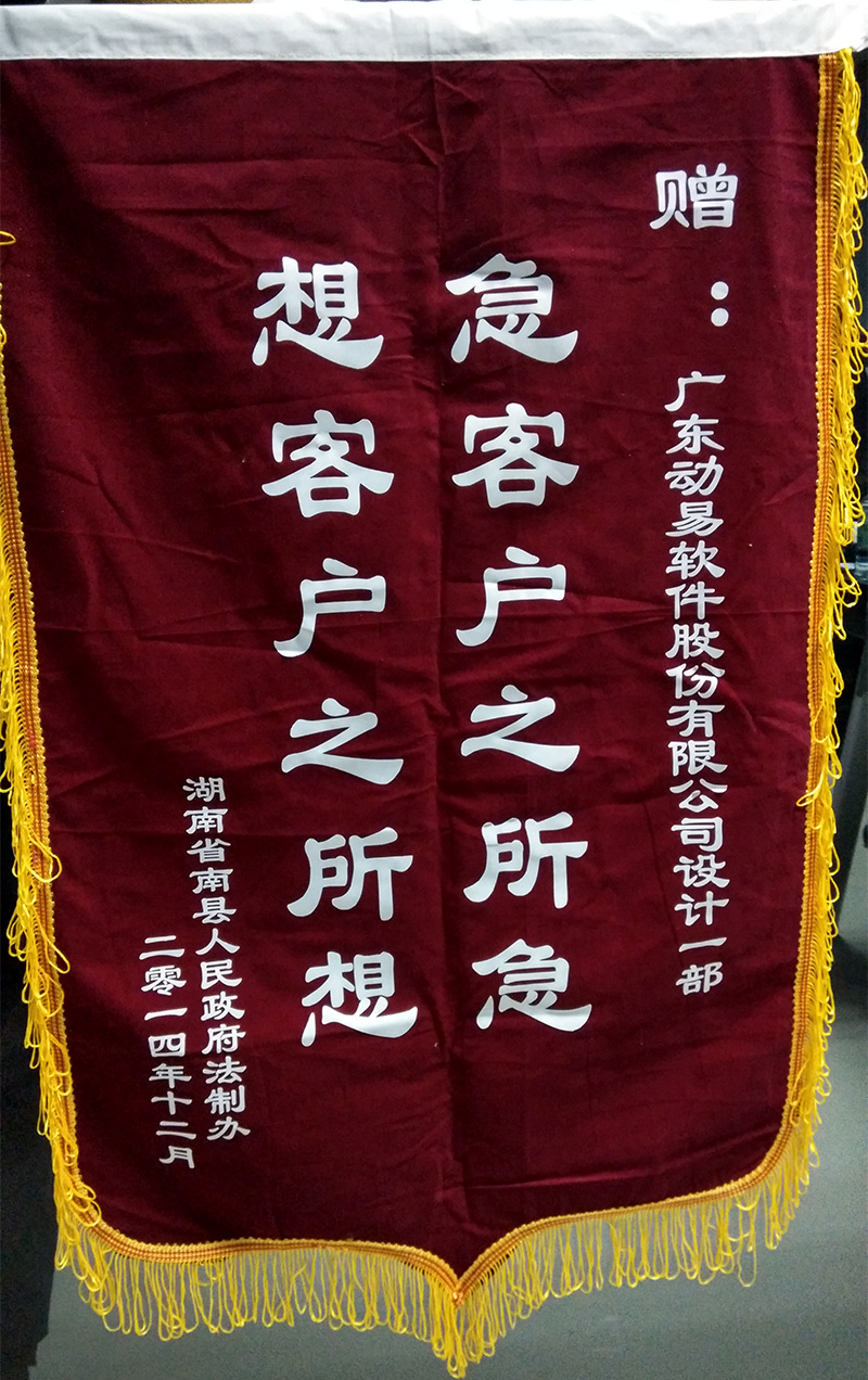 近日,動(dòng)易公司設(shè)計(jì)一部收到了來自湖南省南縣人民政府代表謝意的錦旗,表達(dá)了對(duì)動(dòng)易設(shè)計(jì)一部的設(shè)計(jì)師們?cè)谀峡h人民政府網(wǎng)站群項(xiàng)目中優(yōu)質(zhì)服務(wù)的感謝之情。