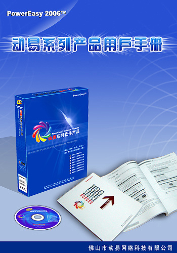 PowerEasy 產品的外包裝采用350G單銅板紙4色精美印刷。動易設計師親手設計的封面,以動易典型的寶石藍為底色,設計簡潔,色調清雅,金八色環(huán)形logo象征動易八個產品系列,細節(jié)處倍顯動易人以客戶為本的服務理念,極具珍藏價值。