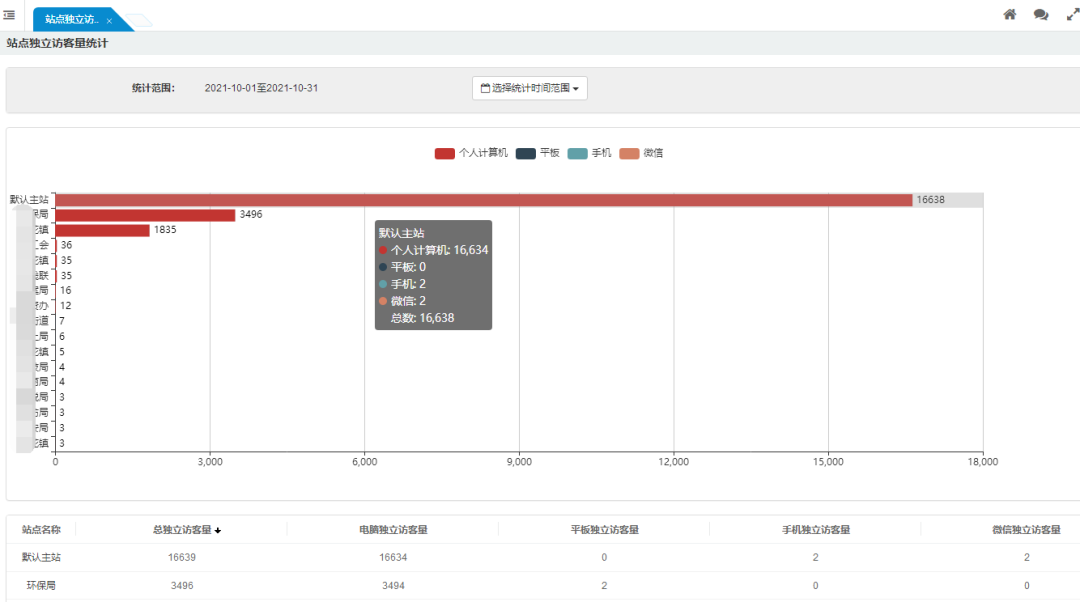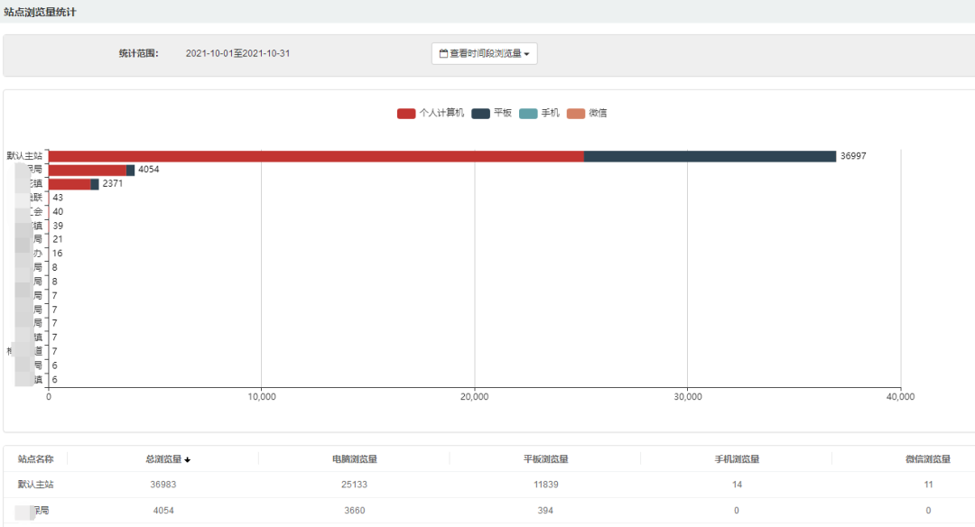 站點瀏覽量明細提供折線圖、柱形圖等數(shù)據(jù)表現(xiàn)形式,有利于了解站點的訪問情況和訪問者關注分布情況。