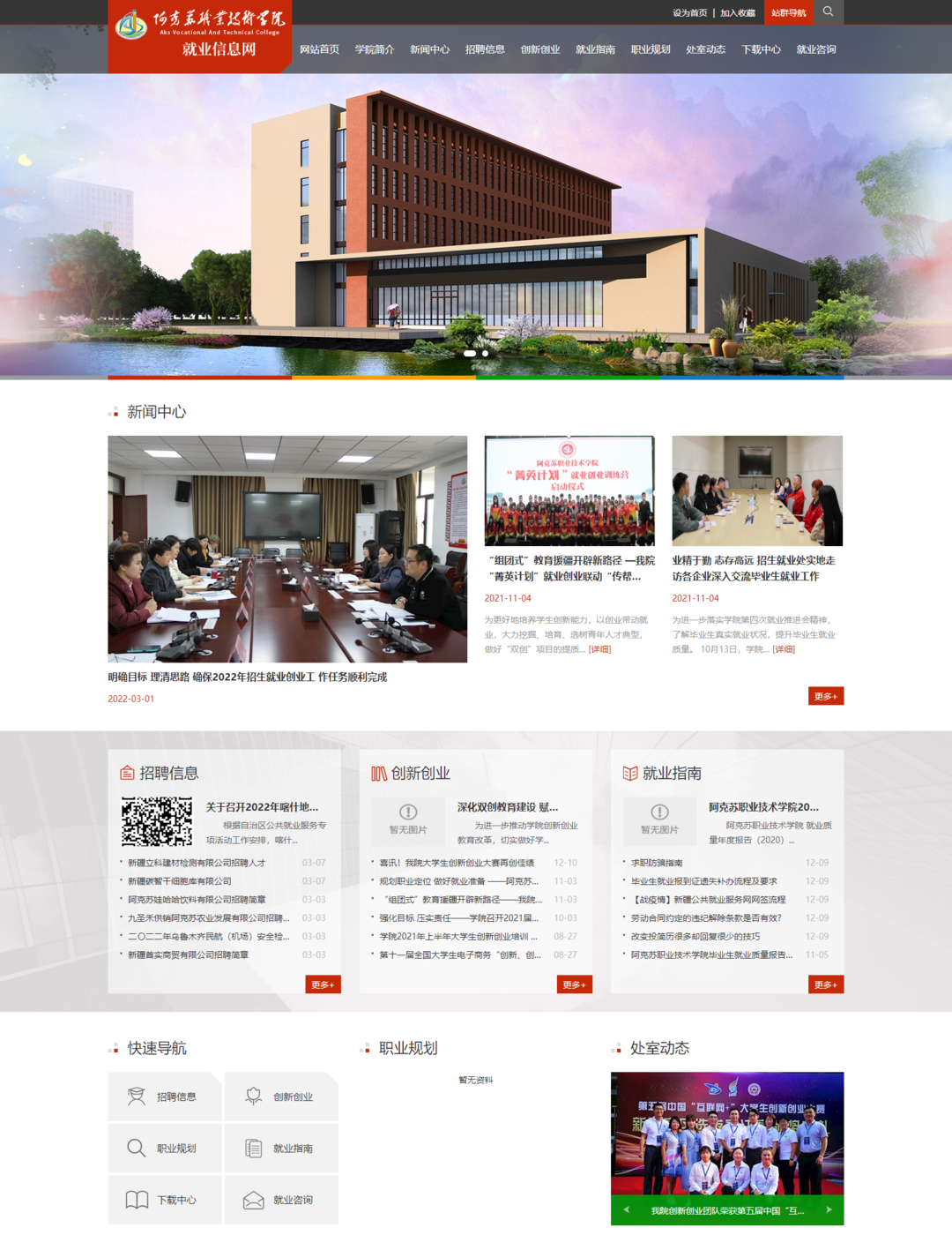 就業(yè)信息網(wǎng)作為站群二級(jí)站點(diǎn),通過(guò)整理、歸納和分析,提供就業(yè)動(dòng)態(tài),對(duì)學(xué)生的求職擇業(yè)及自我塑造和發(fā)展起到幫助和導(dǎo)向作用,并提供求職招聘渠道。