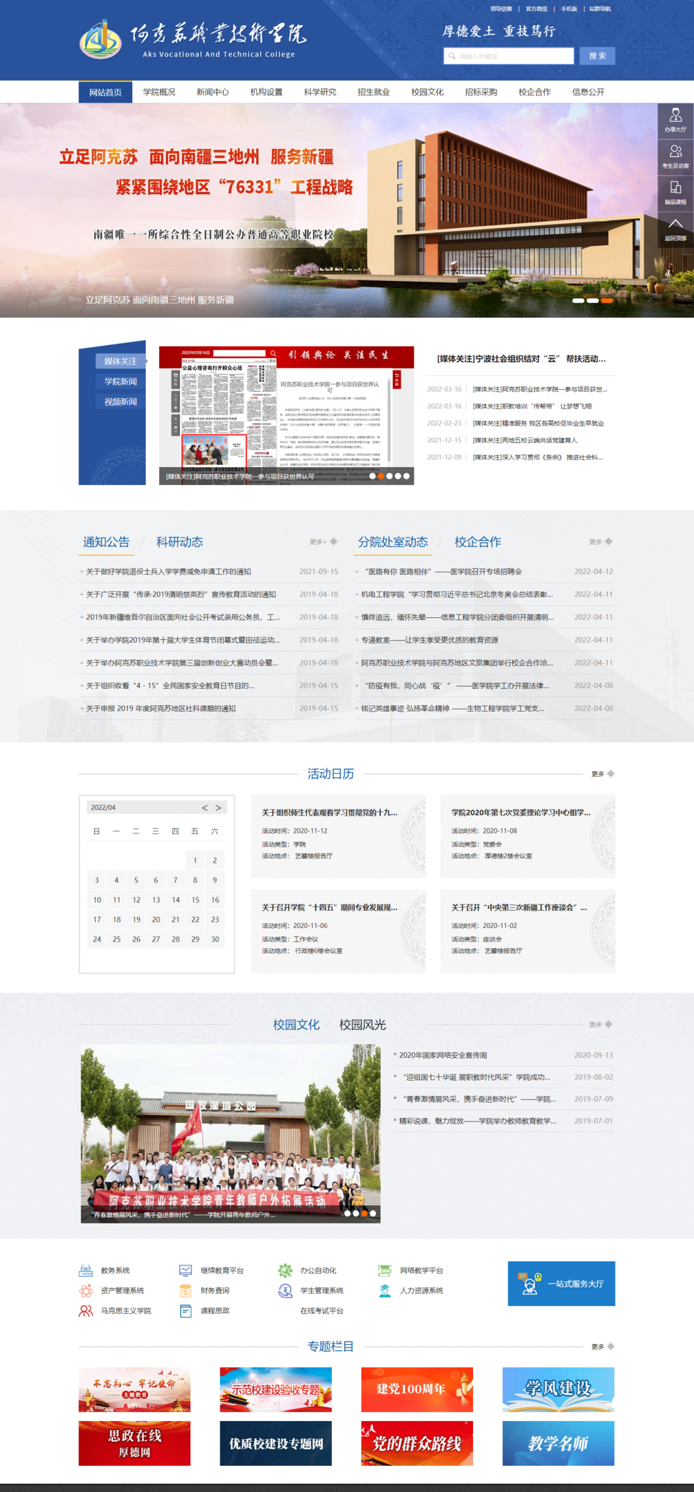 優(yōu)化教學(xué)和管理服務(wù)業(yè)務(wù)流程, 提高網(wǎng)站群平臺(tái)的智能運(yùn)維和安全管理能力,提高學(xué)校教育教學(xué)質(zhì)量和管理水平,推動(dòng)職業(yè)教育數(shù)字化升級(jí),助力阿克蘇職業(yè)技術(shù)學(xué)院打造區(qū)域性教育人才高地。