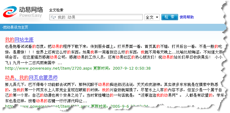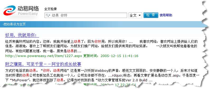細(xì)心的網(wǎng)友們可能已經(jīng)發(fā)現(xiàn)了,點(diǎn)擊動(dòng)易官方網(wǎng)站頂部的搜索按鈕,將跳轉(zhuǎn)到一個(gè)全新的類似Google的搜索界面——這就是動(dòng)易廣州研發(fā)中心的最新成果:動(dòng)易全文檢索引擎!