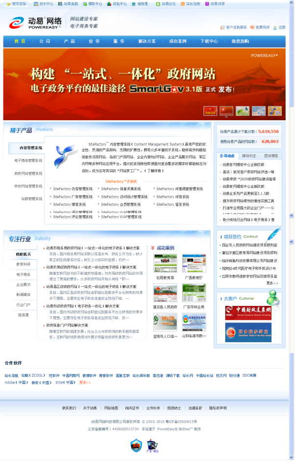 此外,“精于產(chǎn)品 專注行業(yè)”也正是動易公司的全新定位。隨著公司的不斷發(fā)展和產(chǎn)品的進一步完善和成熟,公司逐漸形成并提煉出了“精于產(chǎn)品 專注行業(yè)”這一明確定位,而這正是動易官網(wǎng)全面改版的依據(jù)和背景。七年來,動易正是秉持著“嚴謹務實 精益求精”的產(chǎn)品研發(fā)理念,獨立研發(fā)出了SiteWeaver 內(nèi)容管理系統(tǒng)、SiteFactory 內(nèi)容管理系統(tǒng)、BizIdea 企業(yè)電子商務系統(tǒng)等成熟的核心基礎產(chǎn)品,并在此基礎上針對不同行業(yè)推出了SmartGov 政府網(wǎng)站管理系統(tǒng)、SmartSchool 學校網(wǎng)站管理系統(tǒng)、SiteGroup 站群管理系統(tǒng)等行業(yè)性軟件產(chǎn)品及各級政府及學校網(wǎng)站解決方案。而今后動易也將更專注于其他更多細分行業(yè)的研究,以為更多的行業(yè)用戶提供網(wǎng)站建設最佳解決方案。